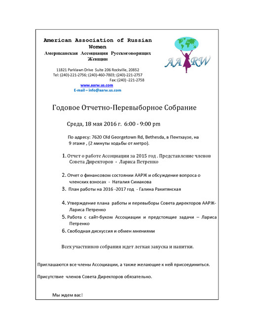 С января 2012 года Американская Ассоциация Русских Женщин вводит новые правила вступления в Ассоциацию и членства.